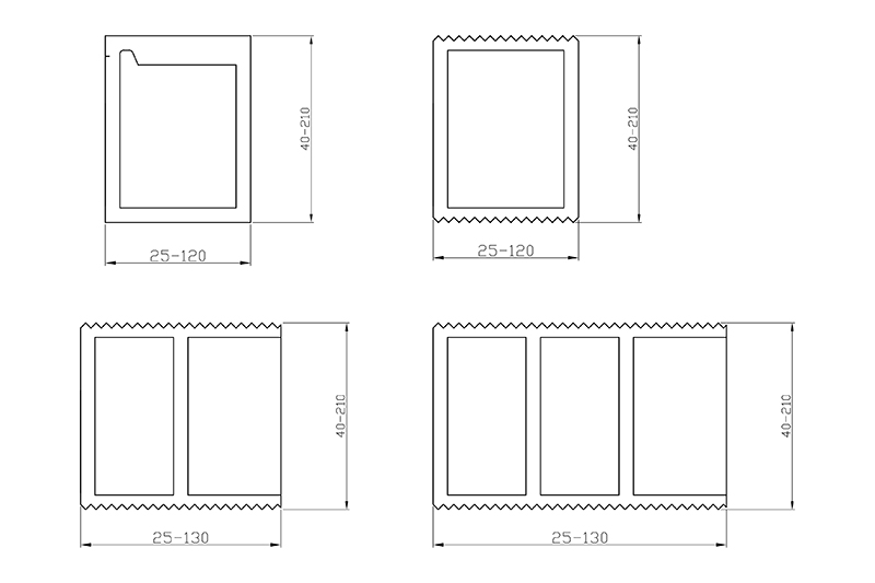 橫封輥筒分割數爲: 2分割時120-210mm 3分割時80-150mm 4分割時60-120mm 6分割時40-75mm ※根據橫封寬度袋長可變範圍不同。 |